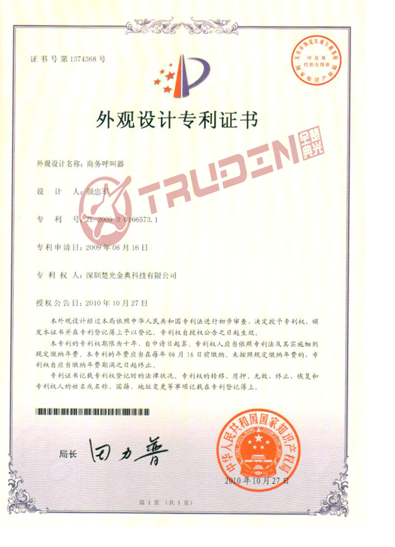 楚光金典:设计专利证书
