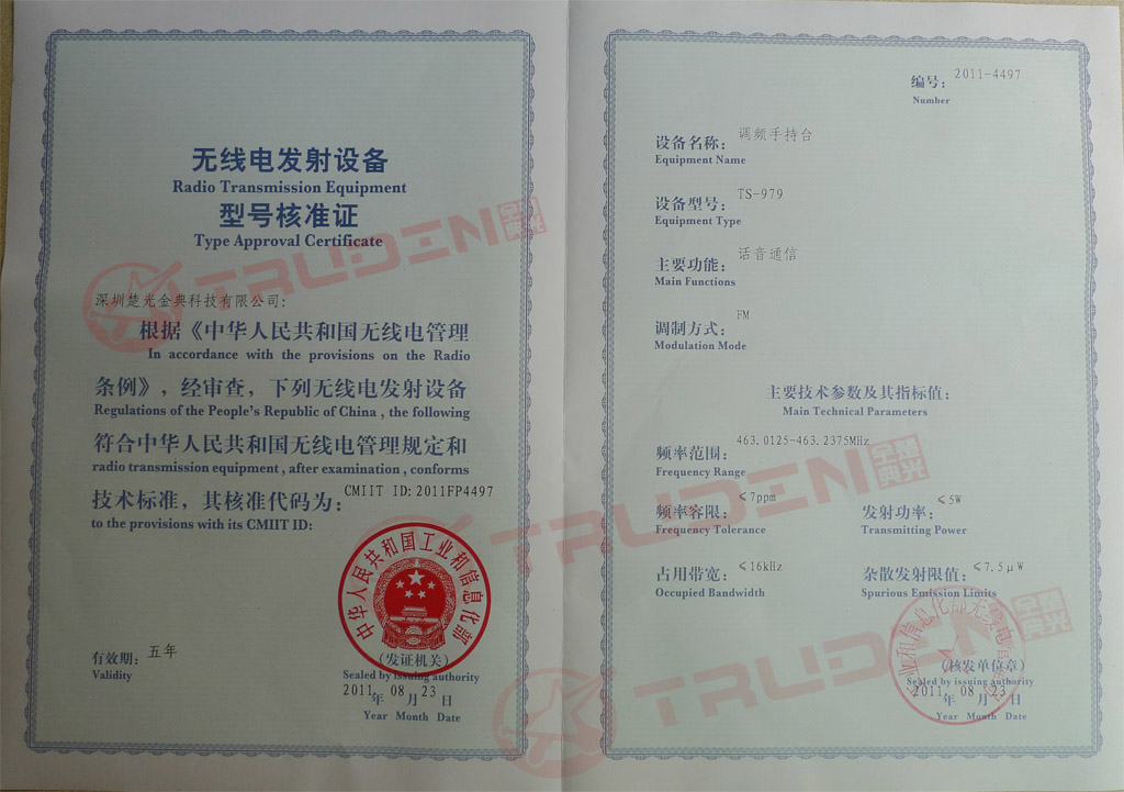 电梯无线对讲设备核准证